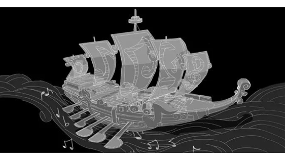 最能直觀體現(xiàn)粵港澳大灣區(qū)特色的音樂作品,非《大灣區(qū)協(xié)奏曲》莫屬了。通過虛擬技術呈現(xiàn)了兩艘“音韻之船”,兩船在創(chuàng)作結構上首尾呼應,在大灣區(qū)的夜景中乘風破浪,從過去駛來,向未來奔赴,構成了絢麗多姿又直抵人心的壯麗景觀。