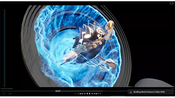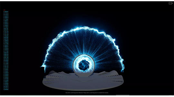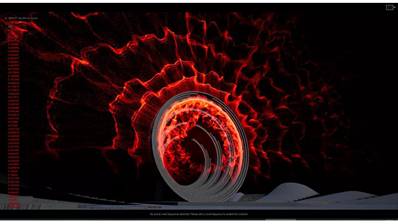 《競先組曲》是導演組特別打造的純器樂競演節(jié)目,以樂手之間的指尖競速,表達粵港澳大灣區(qū)發(fā)展之迅速。在節(jié)目中,首次使用音頻實時驅動粒子特效技術,特別提取40余條分軌音頻,經(jīng)反復測試,讓視覺特效與音樂達到最大程度的配合與交融,為整個音樂表演環(huán)境,營造激烈、熱烈的氛圍感。