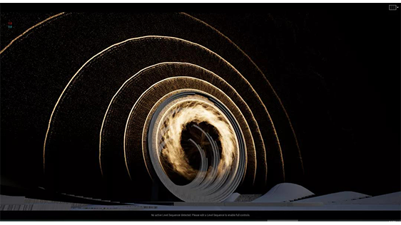 在歌曲《再回首》中,提取出歌詞中的時間概念,用UE4虛擬現(xiàn)實技術,在舞臺立面以主視覺鐘表為意向,表達出時間流逝的氛圍感。地面則主打空間概念,采用裸眼3D技術為兩位歌手打造出獨立的空間舞臺,尤其是副歌合唱部分,以影像搭建空中通道,實現(xiàn)兩位歌手的匯聚演唱,輔助音樂會營造了一次頗具儀式感的表演場景。