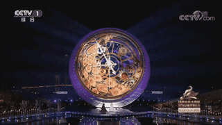 表盤設計的過程,經(jīng)歷了從人物到植物再到紋樣的過程,最后選定的是高雅美麗的孔雀形象??兹副肀P的材質(zhì)設計,和形象設計一樣,也經(jīng)歷了多輪推敲的創(chuàng)作過程,從顏色漸變到毛玻璃,最后選用了鑲嵌金絲寶石材質(zhì)。地面的裸眼3D中心舞臺視覺則打造了與孔雀相配合的抽象孔雀翎效果。
