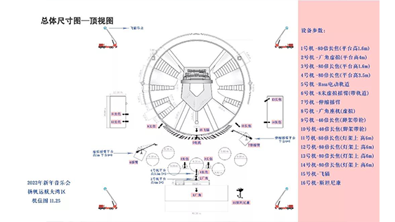 本次新年音樂會,導播盧剛為更好的呈現(xiàn)電視畫面,將機位拍攝細節(jié)位置做了重點規(guī)劃,同時啟用4K轉播車共16迅道攝像設備。其中座機11迅,特種設備機位5迅??紤]到拍攝場地各種因素,本次對長焦鏡頭的需求較大。