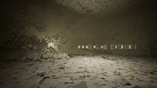 每個房間都提供不同的視聽體驗。像這個被綠色矩陣包圍的房間無疑會讓人想起《黑客帝國》。房間擺布一些尋常的辦公用具。值得留意的還有巧妙的路線指引。跟隨地上的電線向前,便又到了另一個空間。