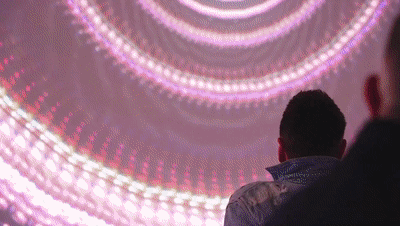 多感官、較高強度的綜合體驗:沉浸式數(shù)字藝術空間具有特制的大型畫面以及立體聲效,圍繞主題設計互動方式,將內容融入互動中,強烈的氛圍代入感使觀眾進入空間即能沉浸其中,達到身臨其境的效果。