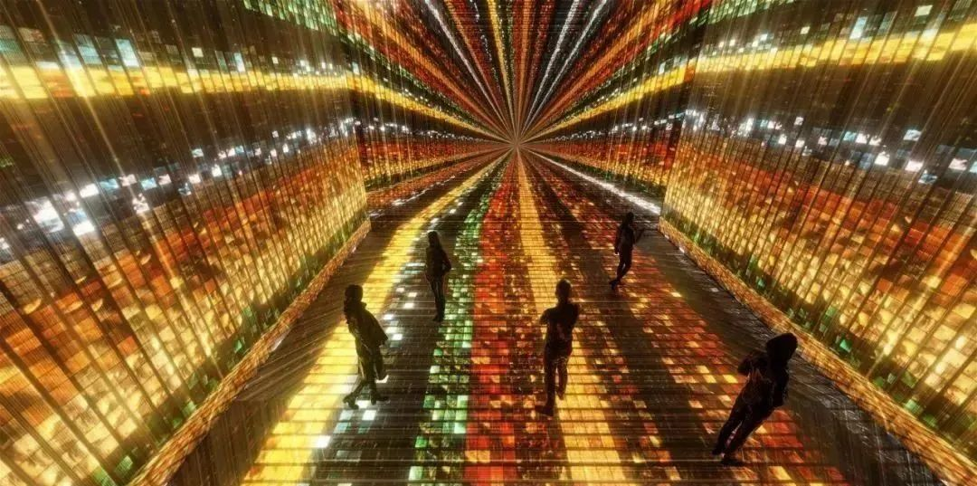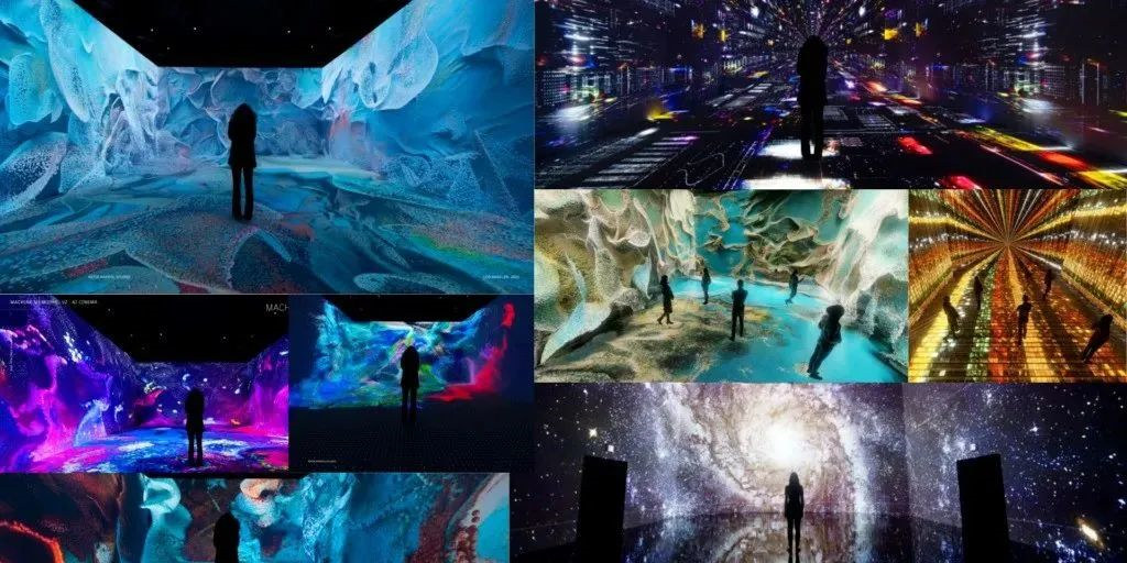 現(xiàn)階段數(shù)字藝術指的是結合前沿的信息技術(5G、VR、AR、人工智能、云計算和大數(shù)據(jù)等新的信息生態(tài)鏈)用于藝術活動的創(chuàng)作中,利用多通道投影融合技術將投影畫面完整地投射到四周墻面、地面上,形成一種動態(tài)的封閉式空間,給觀眾一種前所未有的、身臨其境的震撼享受。