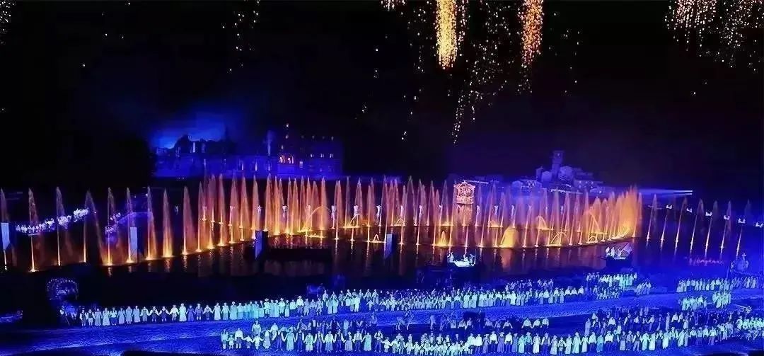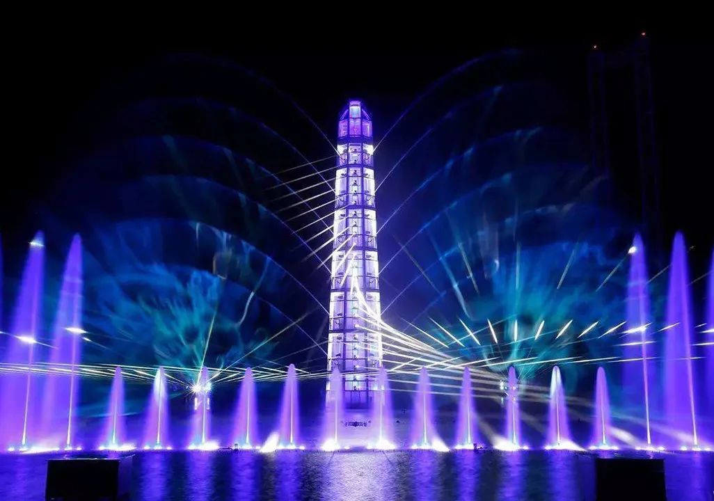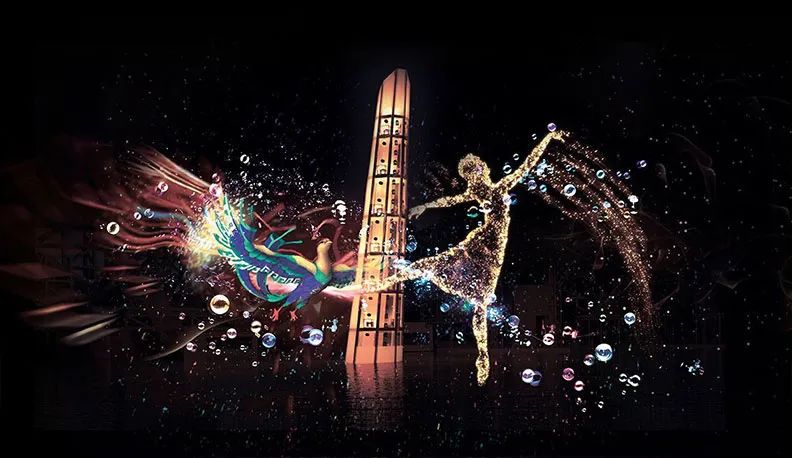 夜晚,《天幕水極》進一步運用水幕、噴泉、音樂、全彩激光、3D影像、焰火等國際最新的多媒體藝術(shù)和技術(shù)成果,講述少年“羽”的理想與愛情,為游客呈現(xiàn)水火交融、電光流影、時空穿越的3D全感官浸入式震撼水秀體驗。