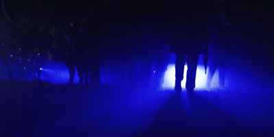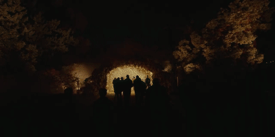 眼前一片光芒籠罩的地方,是通向燈光森林的隧道。落日余暉般的景色吸引游客靠近。