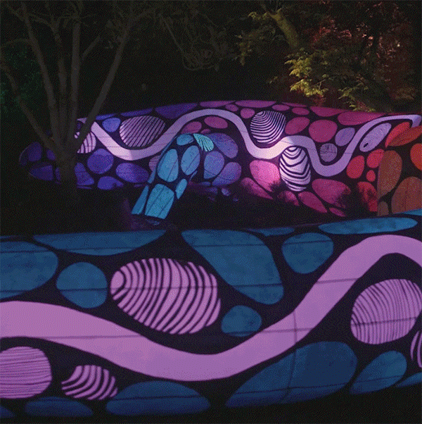 《Light Cycles》是由Moment Factory打造,植根于人類與自然關系的探索,通過視頻投影、燈光效果、激光、煙霧和音樂來放大自然世界的聲音,將阿德萊德植物園變成奇妙的燈光森林,顛覆人們的日常認知。