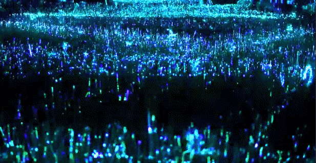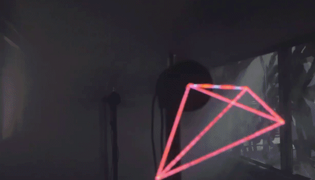 為了實現(xiàn)空氣懸浮、裸眼3D的顯示效果,黑色部分幾乎完全透明,發(fā)光色塊在人眼的視網(wǎng)膜中留下形狀與色彩,與黑色部分形成鮮明對比,這樣的方式使全息炫屏打破了成像媒介對于光影的空間束縛。