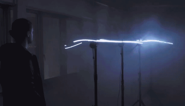 裝置兼具動態(tài)延展性的全息炫屏陣列,屏幕可以形成任何所需形狀的各種長度的線。