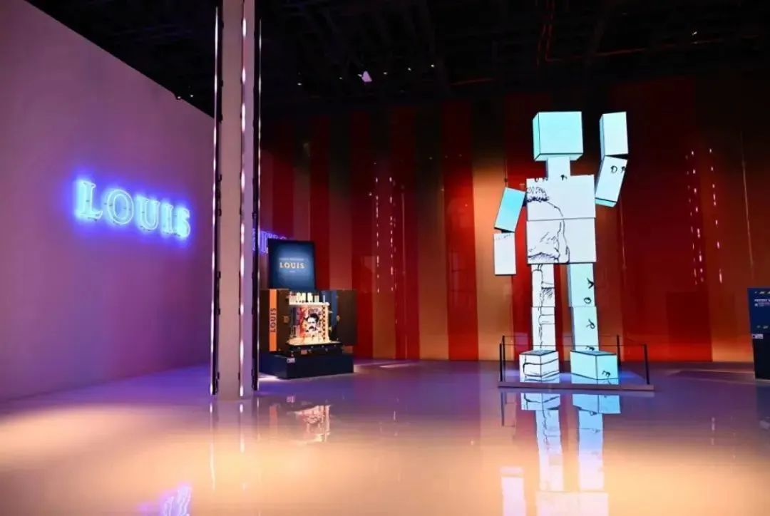路易.威登(Louis Vuitton)的“200個(gè)行李箱200個(gè)夢(mèng)想家”展覽占據(jù)了一整座建筑,其大窗戶被充滿活力的條紋包裹著。一旦進(jìn)入室內(nèi),游客將會(huì)遇到一個(gè)“機(jī)器人”造型的行李箱,在那里,一個(gè)個(gè)鑲嵌著數(shù)字屏幕的行李箱——“魔盒”——連接著近200年歷史的過去和未來。