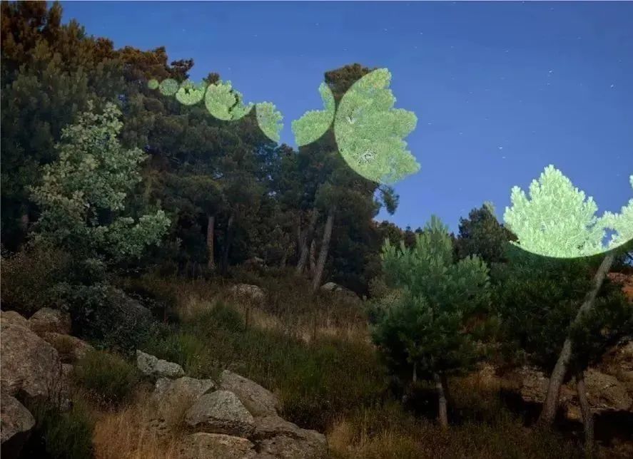 西班牙藝術(shù)家Javier Riera將光束投射到各種自然景觀上,創(chuàng)作出一系列特定樹(shù)形的幾何光線投影,藝術(shù)家通過(guò)該作品可以加深觀眾和大自然的聯(lián)系。