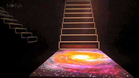 “THIS WAY OUT”是法國(guó)團(tuán)隊(duì)lnlo在柏林創(chuàng)造的地下沉浸式迷宮,當(dāng)你的感知逐漸消失在黑暗中時(shí),空間被解構(gòu)了,勾勒出的樓梯將觀眾引向穿過(guò)墻壁、地板和天花板的想象的通道。