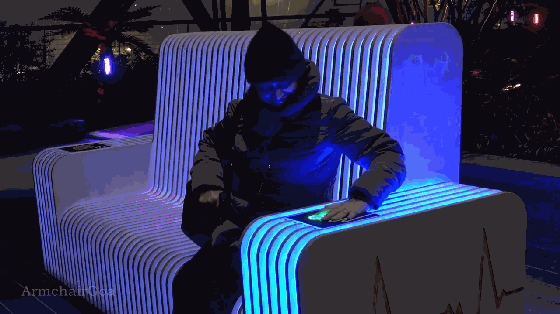 “Vena Lumen”的意思是脈沖光,在這個令人驚嘆的長凳上坐下,將手放在傳感器上,觀察它將你的心跳變成舞動的燈光。展示了兩種生命碰撞并結(jié)合在一起,彼此成為一體。