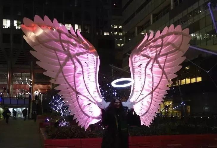 站在發(fā)光的翅膀中央的行人,如同天使降落在觀眾身旁。