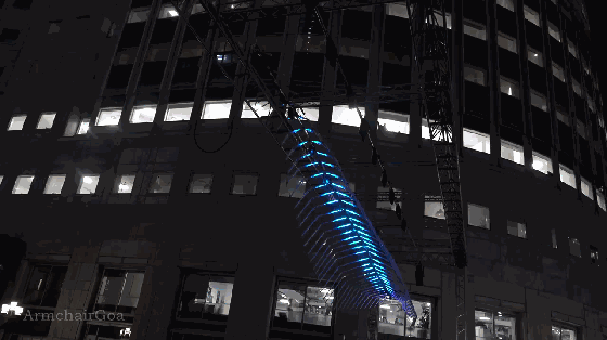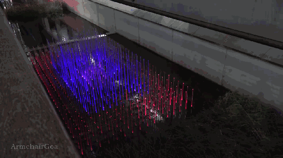500多個照明丙烯酸棒安裝在一個水渠,這件吸引人的藝術(shù)裝置從上面看有規(guī)律地改變顏色。無論是在白天還是夜晚,其跳動的頻率讓人著迷。它被永久安裝在金絲雀碼頭。