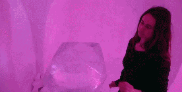 這是由法國團隊Scenocosme創(chuàng)作的名為《Kryophone》的互動裝置。冰塊作為裝置的主要材質(zhì),利用其形狀、密度和透明度并結(jié)合聲音、光線、靜電接觸產(chǎn)生藝術(shù)效果。當觀者觸摸裝置冰塊,裝置會根據(jù)觸摸者的靜電感應發(fā)出相應的反應,像是一個水晶球變換光芒。有了這個裝置,冬天的雪地娛樂項目便不僅僅是滑冰了。