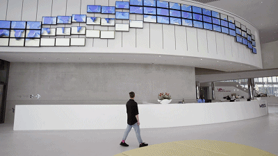 除了上面的巨幕海浪,D'strict還創(chuàng)造過(guò)許多令人驚艷的三維動(dòng)態(tài)視頻墻,2019年首爾“Nexen UniverCity”的“無(wú)限墻”,D'strict引入了30mx7m的LED數(shù)字作品,通過(guò)“故事模式”講述耐克森輪胎的核心價(jià)值和管理理念。