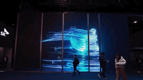 超高分辨率的大屏幕覆蓋了整個(gè)展位的外墻,提供了足夠的吸引力,足以吸引乘客進(jìn)入SK公司,并吸引了更多的參觀者到展位,公眾的熱情響應(yīng)也是一個(gè)加分項(xiàng)。內(nèi)容將在SK公司的一棟大樓中繼續(xù)播放,以便在CES展覽后傳達(dá)SK集團(tuán)的核心價(jià)值觀。