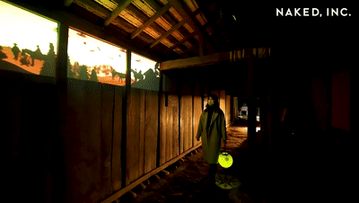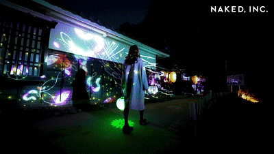 在陽(yáng)光下徜徉在日本民家園的小路上,已經(jīng)感覺(jué)像是穿越到了另一個(gè)時(shí)代。為了提高館內(nèi)的人氣、活化古民居,與 NAKED, INC. 合作,以華麗投影映射將空間變?yōu)樯屎吐曇舻挠螛?lè)場(chǎng),讓百年歷史的建筑煥發(fā)出新的光芒。