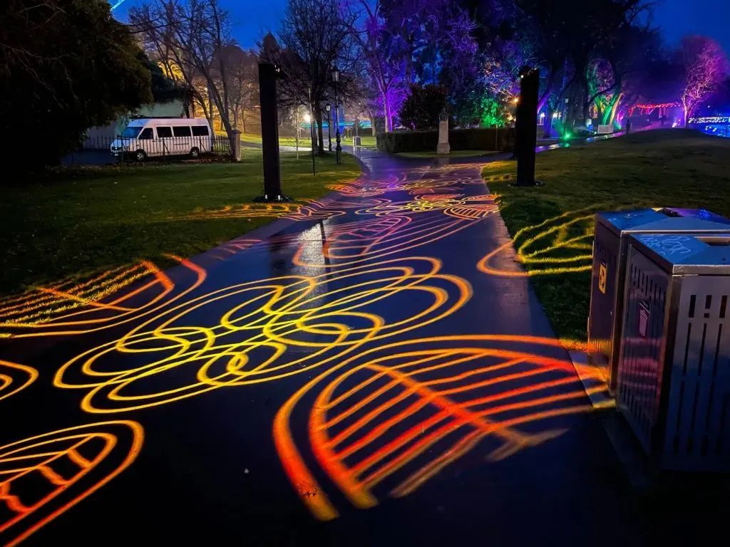 不久前,為了幫助本迪戈尼亞人從疫情和沉郁的冬日中醒來,藝術(shù)家團(tuán)隊(duì)Laservision Mega Media 全新打造了《喚醒本迪戈》大型戶外裝置,讓羅莎琳德公園光芒四射,每天都有奇幻之夜。創(chuàng)作者挖掘公園樹木和土著故事,讓藝術(shù)裝置反映本迪戈豐富的歷史、悠久的文化。其對本迪戈人來說,既可以觀賞藝術(shù),又可以追溯歷史。Laservision 創(chuàng)意總監(jiān)安吉拉·戴維斯(Angela Davis)表示,“我們真的希望這一切都是獨(dú)一無二的,每個(gè)元素都有趣,這樣人們就可以被整個(gè)公園吸引住。”
