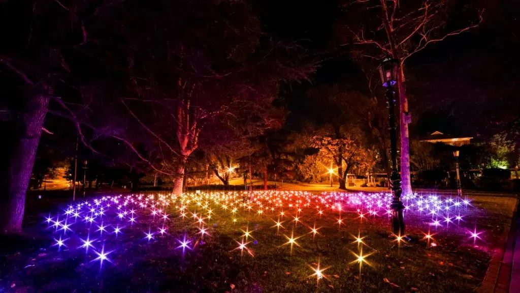 本迪戈是該州最適合天文愛好者的景點(diǎn)之一。夜晚,游客們在此能夠徹底放松,盡情享受這片寧靜的澳大利亞南部天空,透過羅莎琳德公園樹梢的閃耀景象觀賞星空。這次的藝術(shù)裝置同樣也安排了類似星空的燈光秀。