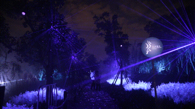 漫步在沿途的森林小道中,“霧靄朦朧,如在仙境”是給人的直觀印象。路旁樹梢燈光灑落,熒光樹叢搖曳生姿,云端之橋夢幻飄忽,猴子撈月上演一場經(jīng)典的“中國式”浪漫,點點星光編織出夢的輪廓。