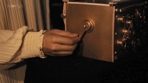 裝置整體分為投影和手搖控制兩部分。觀眾通過搖動握手裝置將速度控制在一定值,核花則以極速綻放;當速度超過一定范圍時,核花會爆炸。通過裝置“核花”,創(chuàng)作者希望告訴我們:核能是福是禍——這完全取決于人類如何使用核能,而不是核本身。