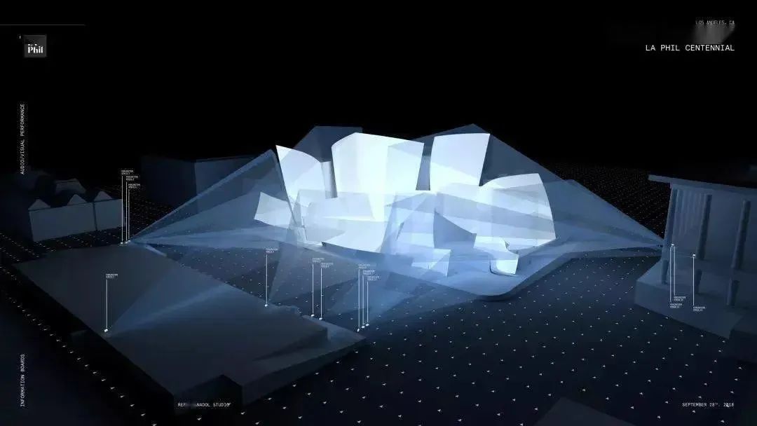 來自土耳其的數(shù)字媒體藝術家—— Refik Anadol 利用數(shù)據(jù),將他的藝術感觸結合數(shù)據(jù)轉化為的極具表現(xiàn)力光影藝術。沃爾特·迪斯尼音樂廳,坐落洛杉磯,擁有起伏的不銹鋼外觀。這一年Refik Anadol和他的團隊接到一項任務將這座音樂廳打造為“夢想”主題的大型藝術裝置。Anadol擅長數(shù)據(jù)整合創(chuàng)作于是他提出:“用一種創(chuàng)造性的、計算機化的“大腦” 來 模仿人類 如何做夢,通過處理記憶來形成圖像和想法的新組合。”