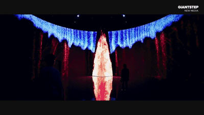 占據(jù)空間C位的這座30×60英尺的 LED 塔象征著鐵本身,在體驗過程中會根據(jù)主題發(fā)生巨大變化。