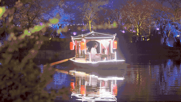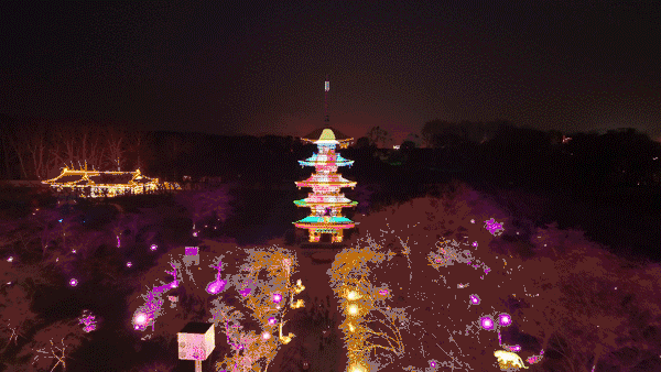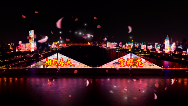 夜幕降臨,流光溢彩的櫻花大道、光影交織的蛙鳴田間、靈動(dòng)可愛的發(fā)光小動(dòng)物,訴說著櫻花園的唯美浪漫、詩情畫意。標(biāo)志性的建筑“五重塔”上演炫彩燈光秀,游船上響起悠揚(yáng)的古箏樂聲,身著唐代服飾的舞者衣袂翩翩……東湖櫻花節(jié)期間,多場演出將在多個(gè)時(shí)段循環(huán)上演。