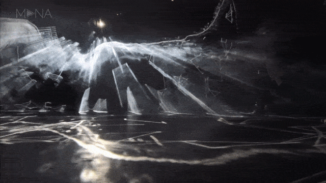作品設(shè)置在一個沒有照明的6000平方英尺的倉庫中心,半透明的三角形墻壁上,液體般的光起伏著。抽象圖案的變化行為在秩序與混亂之間搖擺不定,加之有霧氣彌漫其中,光線模糊,參觀者仿佛置身于夢中。