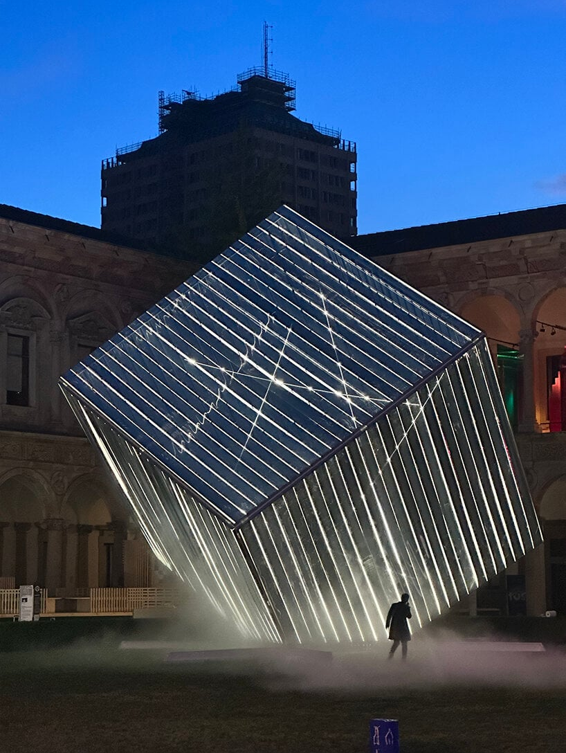 2023 年米蘭設(shè)計(jì)周期間,馬巖松 MAD 的裝置作品“動(dòng)量”在米蘭大學(xué) Cortile d’Onore 的中央庭院展出。