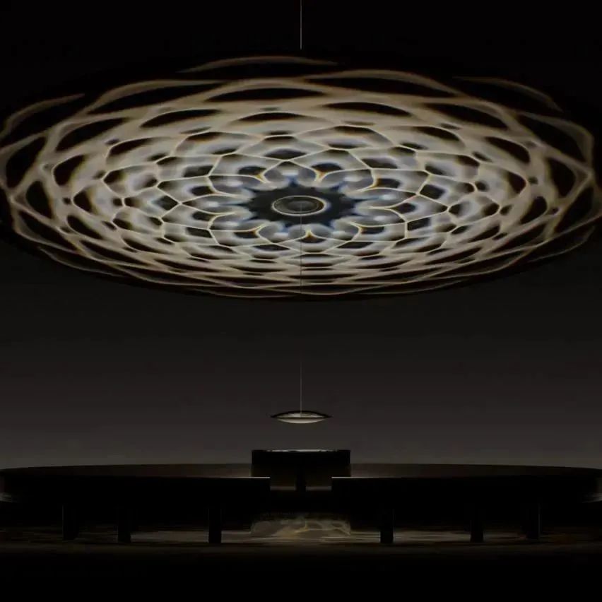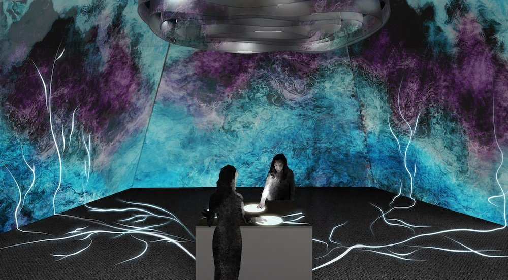 Google與設(shè)計(jì)團(tuán)隊(duì)藝術(shù)家Lachlan Turczan合作共同創(chuàng)作了Shaped by Water,這是一個(gè)探索水作為設(shè)計(jì)靈感來源的展覽。一系列裝置將水與光和聲音混合在一起。鏡面雕塑中的水池隨著附近游客的移動(dòng)而蕩漾開來。抬頭凝視天花板,仿佛置身于天文館,欣賞由液體舞蹈和旋轉(zhuǎn)中的音樂振動(dòng)所產(chǎn)生的波浪光圖案的反射。