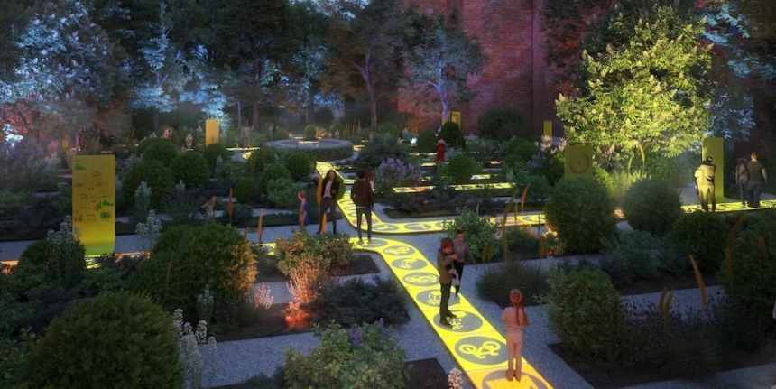 由意大利建筑師 Italo Rota 和 Carlo Ratti 共同設(shè)計(jì)的,位于布雷拉植物園內(nèi)的裝置作品《Walk the Talk – Moving Energy》旨在將公園變成“現(xiàn)場游戲”,呼應(yīng)了“未來實(shí)驗(yàn)室”這一主題。該路徑由產(chǎn)生聲音和光線的數(shù)百塊瓷磚制成。道路會(huì)隨著時(shí)間、光線和聲音發(fā)生改變,探討了移動(dòng)性的發(fā)展。