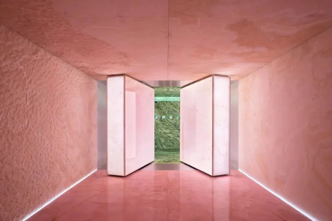 這是SolidNature第二次參加米蘭設(shè)計(jì)周,本次他們委托OMA設(shè)計(jì)了一個(gè)藝術(shù)裝置《Beyond the Surface》,被稱為“沉浸式夢境”,旨在探索天然石材從地質(zhì)礦石階段到最終成品的整個(gè)過程。