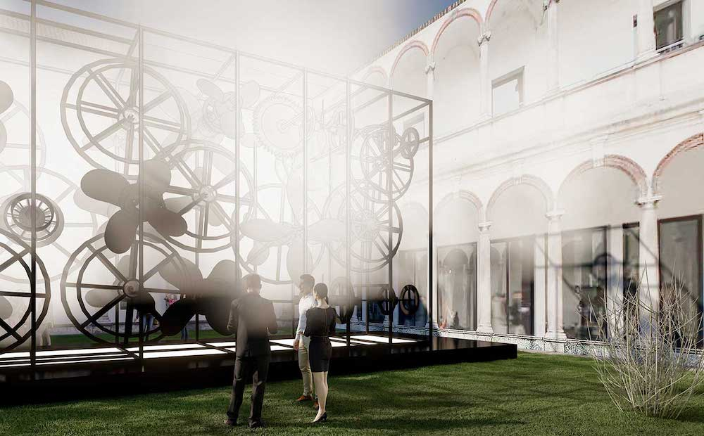 Piero Lissoni在Interni Magazine舉辦的Design Re-Evolution活動(dòng)中為Università Statale 的San Lorenzo 造船廠展示了一個(gè)大型裝置,名為La Macchina Impossibile。展館講述了游艇推進(jìn)的未來。金屬雕塑融合了高科技與熟練的手工勞動(dòng)。它由一個(gè)超大型機(jī)構(gòu)組成,該機(jī)構(gòu)由造船廠正在開發(fā)的綠色甲醇制氫新技術(shù)提供動(dòng)力,用于在其船只上發(fā)電。