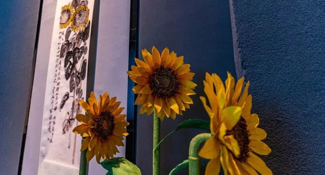 選取齊白石的花卉作品為創(chuàng)作依據(jù),打造具有中式園林風格的藝術花園場景,并且通過研發(fā),將齊白石筆下的花卉活化為花卉題材的機械花卉感應裝置,當觀眾輕輕靠近時花朵則慢慢綻放或者飄風搖動。