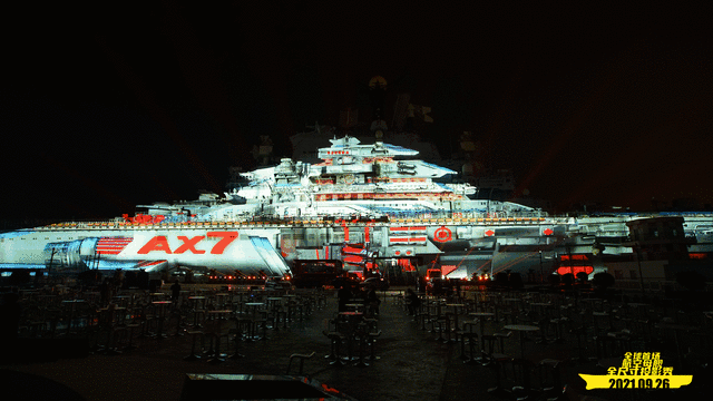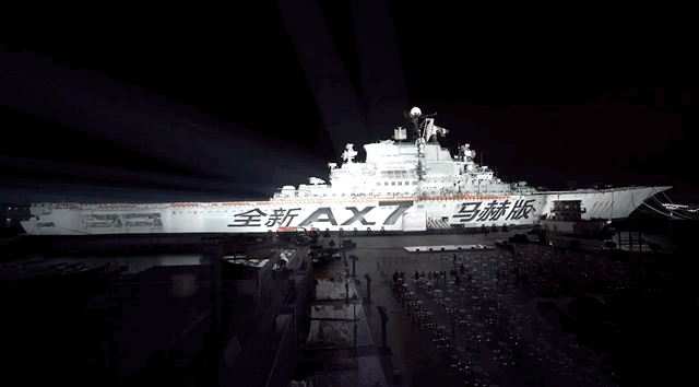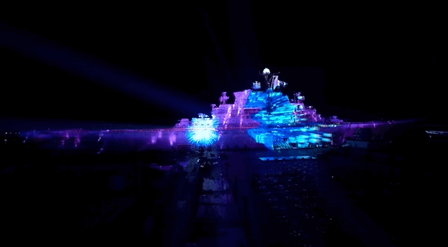 本場投影秀使用42臺40K工程投影機同時工作,覆蓋“基輔號”航母整個艦體,通過裸眼3D動畫再配合百余臺可編程控制的光束燈以及五臺激光燈共同絢麗演繹16k視頻的超高難度震撼畫面,讓數(shù)千名現(xiàn)場觀眾經(jīng)歷了一段回味無窮的光影探索之旅!