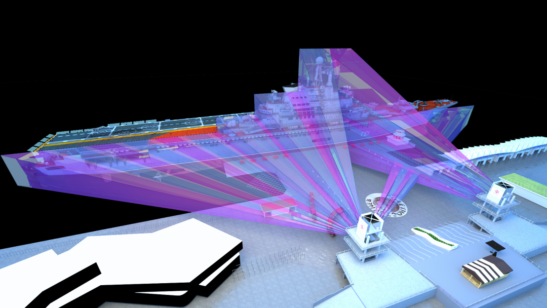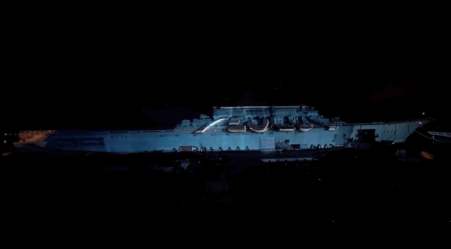 “基輔號”的大體量之大給投影秀制作帶來了重重困難,需要使用42臺40K工程投影機同時工作,覆蓋“基輔號”航母的整個艦體。