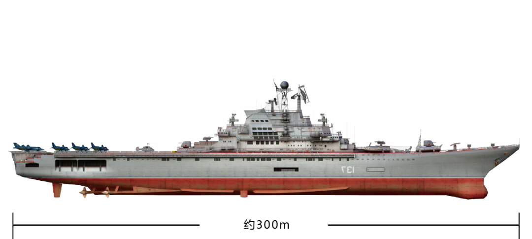 “基輔號”航母是前蘇聯(lián)“基輔”級航母的首制艦。建造于1970年,全長近300米,寬52.8米,全高61米,標準排水量32000噸。