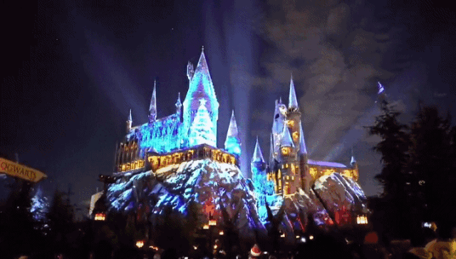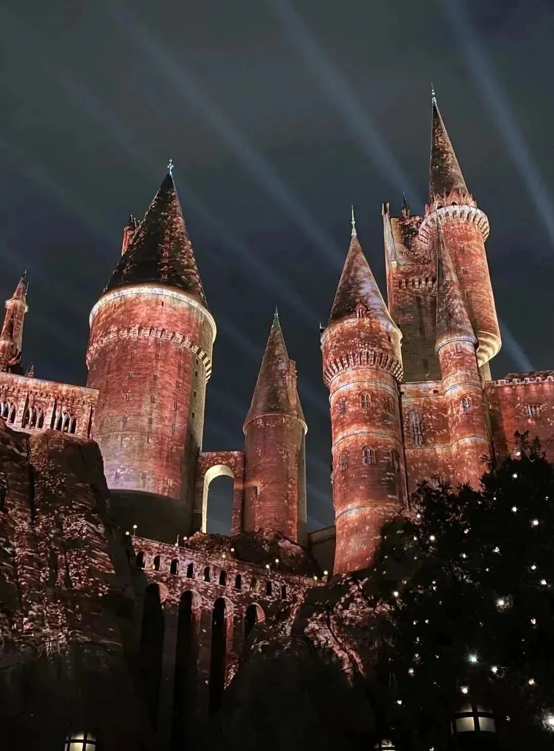▲北京環(huán)球影城霍格沃茨城夜間燈光秀