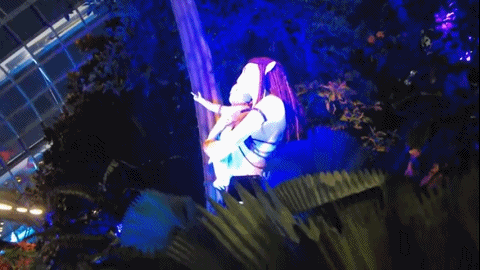 在新加坡觀光宣傳影片中以擎天樹叢的形象出現(xiàn)的,濱海灣花園內(nèi)的高35米的“植物云山”,高度還原了《阿凡達》中的懸浮山。真人大小的電子動物女妖,由專家木偶師講解員處理的小女妖和小毒蛇狼,以及《阿凡達:水之道》中新海洋生物 Ilu 的藝術(shù)雕塑等,好像從電影畫面里走出來的,給觀眾驚喜與視覺沖擊力。