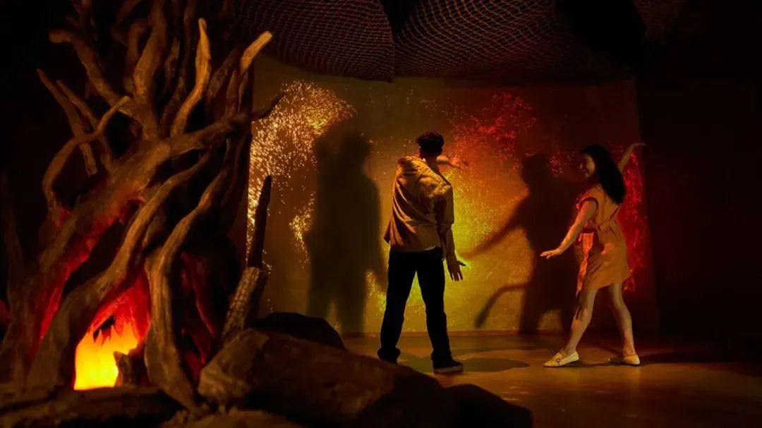 另外,互動感十足的體驗設(shè)施,讓觀眾在音樂與燈光的烘托下盡情舞蹈。隨著墻面生成的光點與火焰,通過AR技術(shù),觀眾仿佛騎上斑溪獸在阿凡達的山谷中翱翔俯沖。