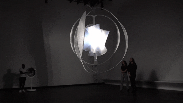 裝置由一系列直徑為3米的半透明“刀片”,圍繞著一根6米長的中央螺旋線構成,參觀者可以轉動裝置周圍的風扇,讓雕塑旋轉起來。