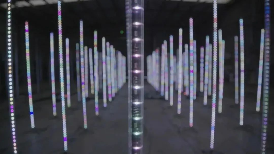 《Monolith》給人催眠般的視覺體驗,高聳的矩形屏幕,激發(fā)人去探索人類與屏幕和數(shù)據(jù)的關系。屏幕是我們塑造人物形象的神奇鏡子,也是我們現(xiàn)實中越來越大的一部分形成的地方。屏幕已經(jīng)融入到我們的生活中,直到最近,它仍然是不可想象的。