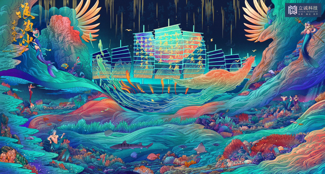 將富有歷史意義和大氣磅礴的傳世山海詩畫,運(yùn)用虛擬影像進(jìn)行光影呈現(xiàn)。