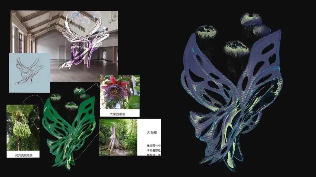 靈感來(lái)源于參考巨魔芋,金杯藤,何其美鹿角蕨這三種植物,借鑒他們的顏色,形態(tài),特點(diǎn),綜合生成。
