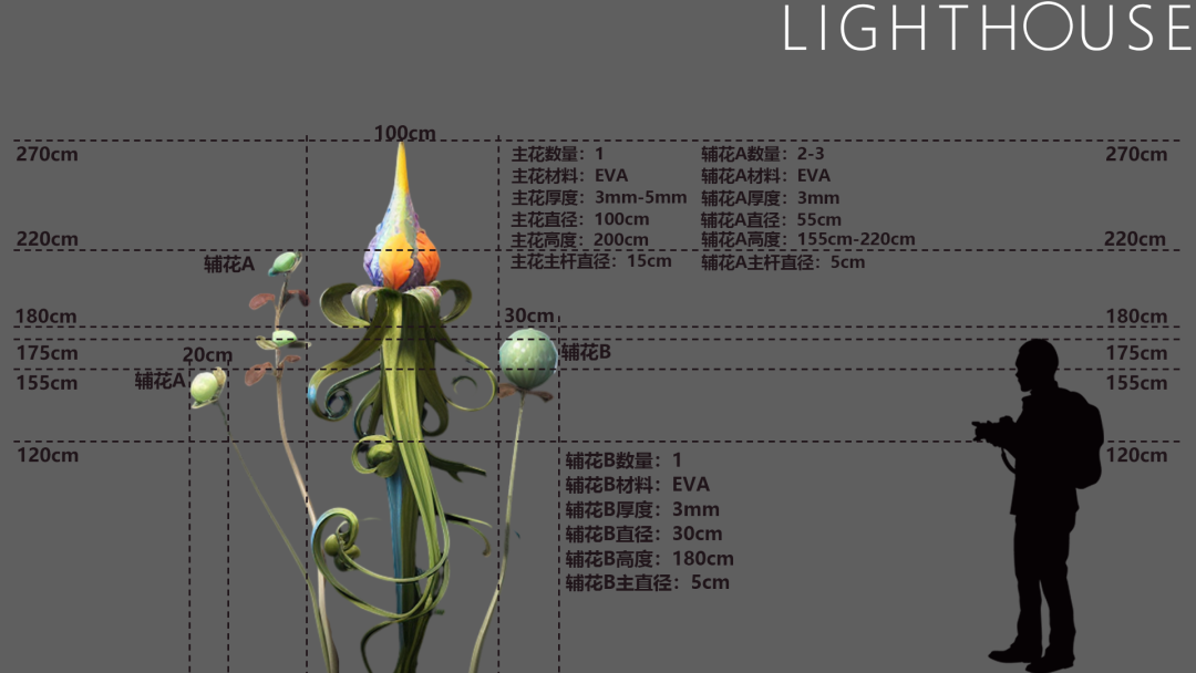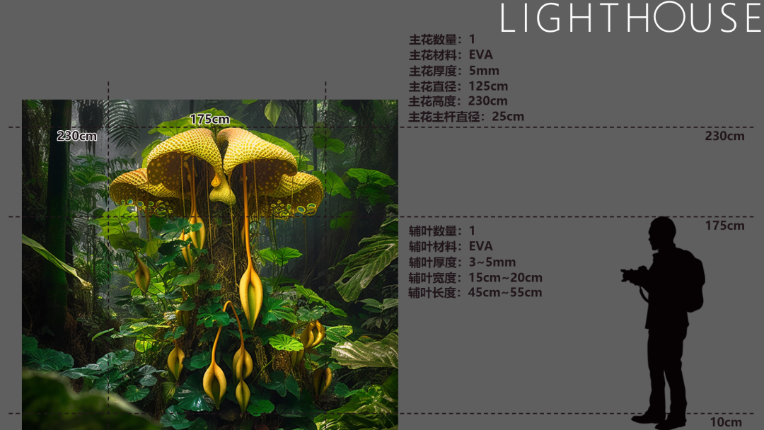 LightHouse作為特邀藝術(shù)創(chuàng)作團(tuán)隊(duì),借鑒熱帶雨林中的雨林生態(tài)系統(tǒng),并提取了雨林植物的特性,利用數(shù)字媒體光影的形式賦予多元化的藝術(shù)美感。通過(guò)巨型奇異花植裝置、數(shù)字光影、雨林植物營(yíng)造以及露營(yíng)元素的融合,希望為觀眾提供多維度感官體驗(yàn)。讓城市人身臨其境地感受雨林的魅力,在城市的雨林中了解雨林植物和現(xiàn)象的知識(shí),體會(huì)雨林對(duì)我們生存的重要意義。