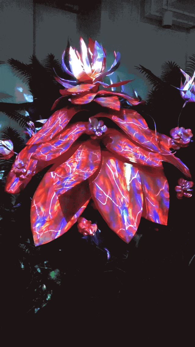 此次,LIGHTHOUSE團(tuán)隊(duì)推出了“奇異花植”光影裝置系列,將魔幻的動(dòng)態(tài)視覺(jué)效果注?其中,在上海這座魔力之都為觀眾帶來(lái)獨(dú)特而難忘的視覺(jué)盛宴。該系列從熱帶雨林的花植中汲取靈感,設(shè)計(jì)并添加紋理和材料,融合了不同的“色彩調(diào)色板”,結(jié)合自然和環(huán)境元素,進(jìn)一步增強(qiáng)了展示效果,營(yíng)造出一個(gè)完全沉浸式的觀賞體驗(yàn)。