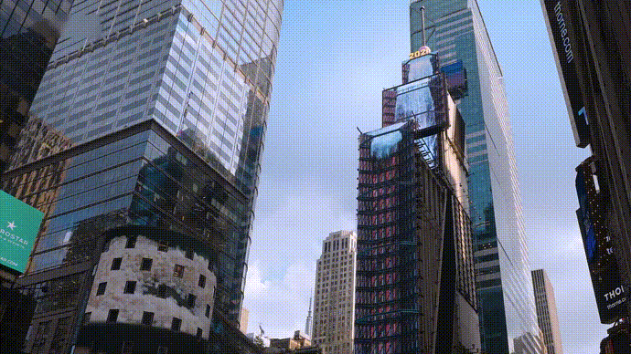 公共媒體藝術(shù)作品《Waterfall-NYC》在前不久于紐約時代廣場One Times Square外立面大屏幕上展出。